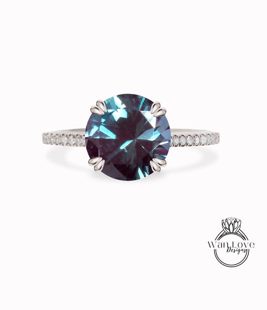 Alexandrite & Diamond Round Engagement Ring Double prong Solitaire, 14k 18k White Rose Yellow Gold Platinum Custom made Wedding Anniversary Gift