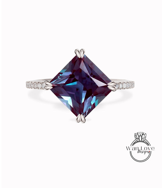 Kite Alexandrite Ring Alexandrite Princess Diamond Ring Geometric Engagement Ring Color Change Engagement Ring Kite Moissanite Gemstone Ring