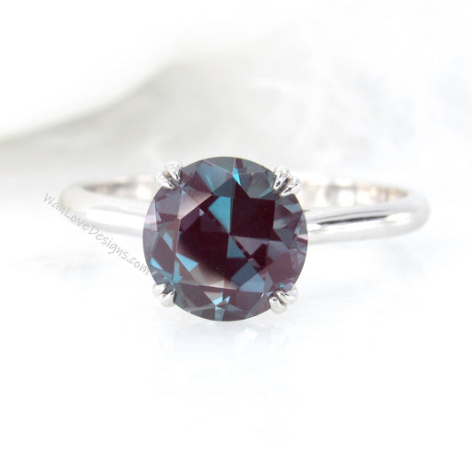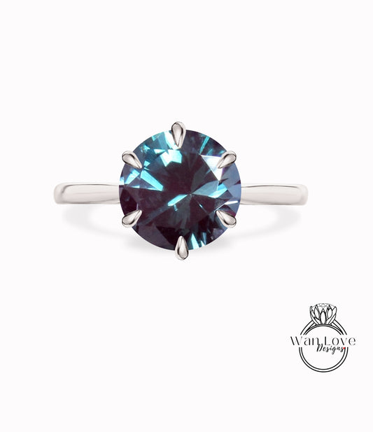 Alexandrite Trellis 6 prong Round Solitaire Engagement Ring 14k 18k White Yellow Rose Gold-Platinum-Custom made-Wedding-Anniversary Gift