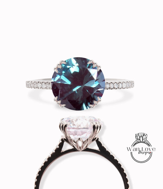 Alexandrite & Diamond Round 3 triple fishtail prongs Engagement Ring, 14k 18k White Yellow Rose Gold-Platinum-Custom-Wedding-Anniversary