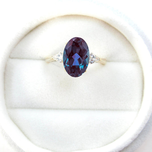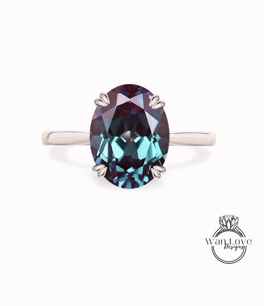 Alexandrite Oval Solitaire Engagement Ring, Cathedral,14k 18k White Yellow Rose Gold,Platinum,Custom,Wedding,Anniversary Gift,WanLoveDesigns