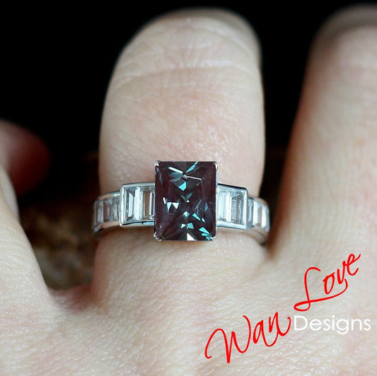 Alexandrite Moissanite Emerald Radiant Baguette Art Deco Engagement Ring 3ct 9x7mm Custom Wedding Anniversary Gift