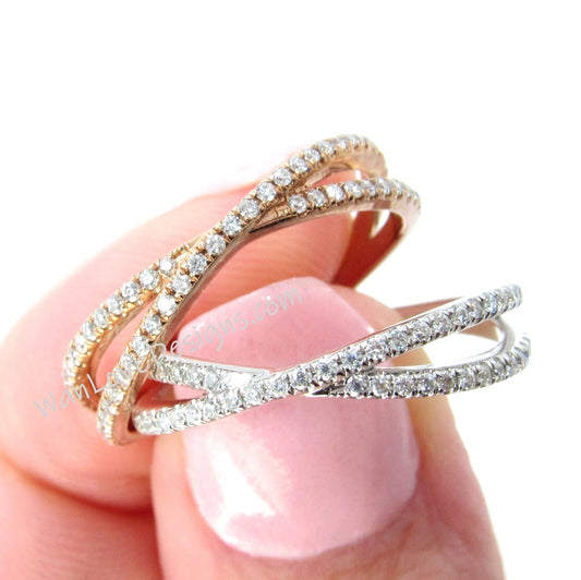 Pave X Ring • Criss Cross Diamond Ring • Almost Eternity Ring • Minimalist Jewelry • Double Band Ring • Gift for Her