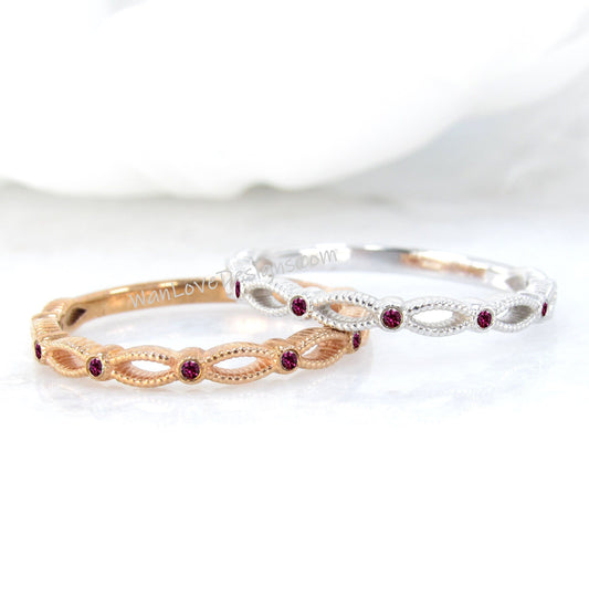 Ruby Wedding Band Ring Round Bezel Milgrain 5 Gemstone Antique Style Circle Custom Gem Stone Engagment Ring Band