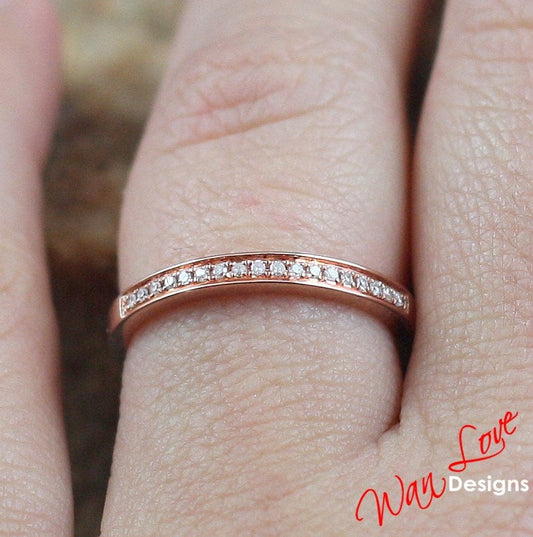 Sale Ready to ship-Diamond Milgrain channel half Eternity Stackable Wedding Band Ring-925 Silver Rhodium Yellow Rose Gold-Engagement