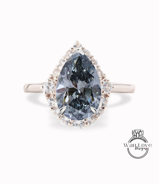 Vintage 2ct engagement ring|Unique Grey moissanite diamond halo wedding ring|Cluster Pear shaped halo Bridal ring|Antique Anniversary ring