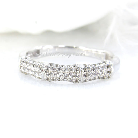 Vintage Bamboo Shape Diamond Pave Rings/ Antique Bridal Stack Rings/ Diamond Matching Bands/ Elegant Women's Rings/ Promise Rings
