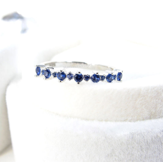 Vintage Birthstone wedding band, Cluster half eternity band, Unique Moisanite Blue Pink Sapphire Ruby ring, Promise Anniversary ring Ready