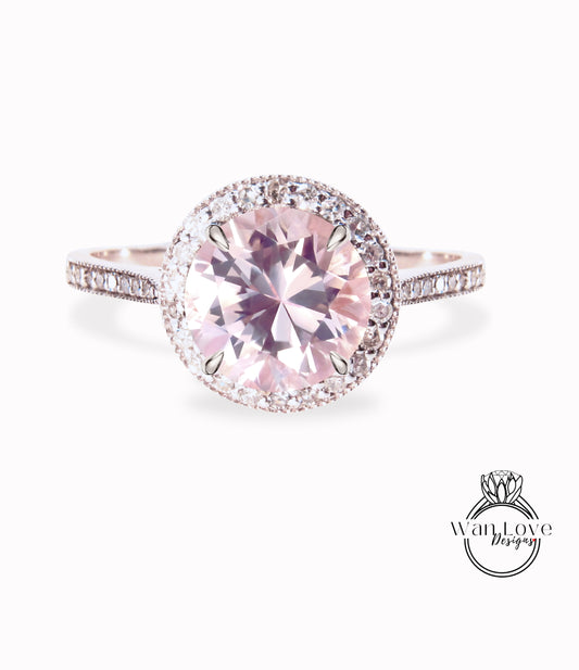 Vintage Light Pink Sapphire engagement ring 14K/18K rose gold floral Diamond halo ring Art deco wedding Unique ring Anniversary Promise ring