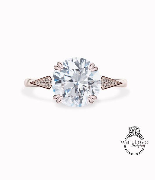 White Sapphire Diamond round engagement ring vintage Rose gold Unique Cluster women Kite Pave shield Diamond wedding Bridal Anniversary gift