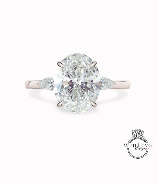 1CT Oval Lab Created IGI Diamond Engagement Ring solid rose gold Three stone Ring pear oval Lab Grown Engagement ring Proposal ring For Her