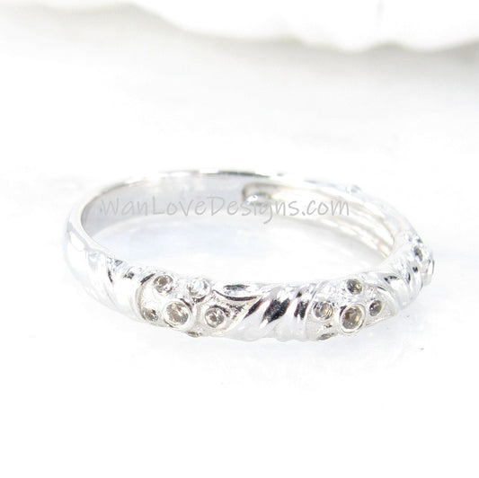 14K Solid Gold Rings/Floral Diamond Wedding Band/ Flower White Sapphire Matching Band/Stack Ring/Promise Ring/Birthstone Choice Ring