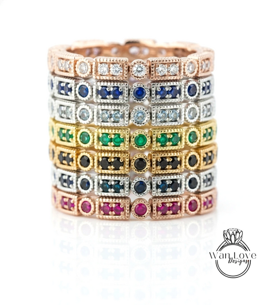 14K Solid Gold Rings/Art Deco Diamond Wedding Band/ Milgrain Bezel Matching Band/Stack Ring/Promise Ring/Birthstone Choice Mothers Bands