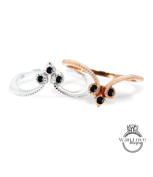 Black Diamond Curved Stacking Ring • Diamond Chevron Ring, Thin Gold Minimalist Ring • Dainty Engagement Ring • Gift for Her