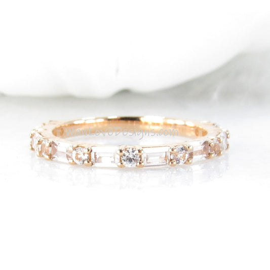Baguette Round Almost Eternity Ring • Diamond 3/4 Eternity Ring • Dash Dot Engagement Ring in Rose Gold • Moissanite Matching Wedding Band