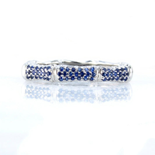 Bamboo Blue Sapphire Wedding Band Stacking Ring Custom Anniversary Ready to Ship