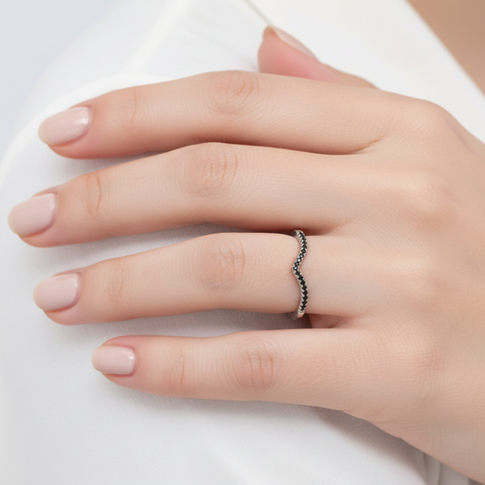 Black Spinel wedding band vintage band unique curved wedding band matching band art deco ring bridal Anniversary ring, Ready to ship ring