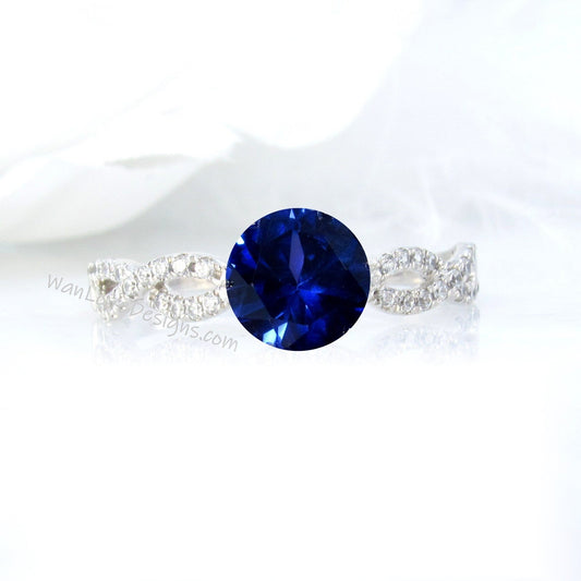 Blue Sapphire & Diamond Engagement Ring Set Wedding Band 3/4 Eternity Infinity Twist, Custom,Anniversary Gift,14k 18k White Rose Yellow Gold