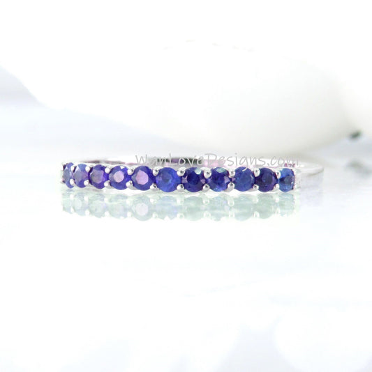 Blue Sapphire Half Eternity Stackable Wedding Band Ring 14k 18k White Yellow Rose Gold-Platinum-Custom made-Wedding-Engagement-Anniversary