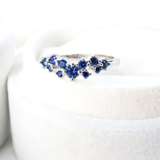 Curved Diamond Wedding Band vintage Sapphire Birthstone Ring Unique White gold Moissanite stacking Delicate matching band Promise Aniversary