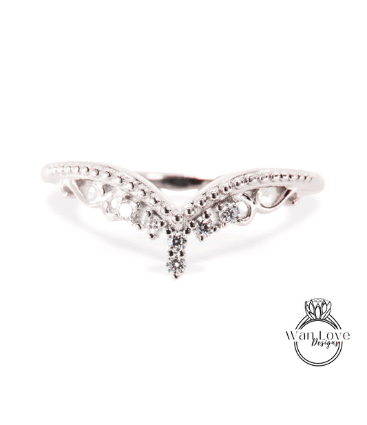 Curved Shape Wedding Band/ Milgrain Tiara Matching Band/ Women Wedding Ring/ Crown Shape Stacking Band/ Custom Birthstone Band/Wedding Gifts