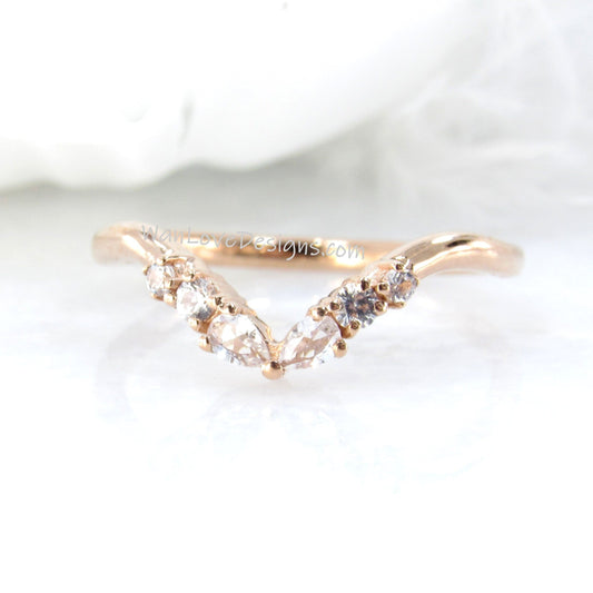 Diamond Curved Nesting Matching Moissanite Wedding Band Ring Sapphire 14k 18k White Yellow Rose Gold Platinum Custom Anniversary Bridal Gift