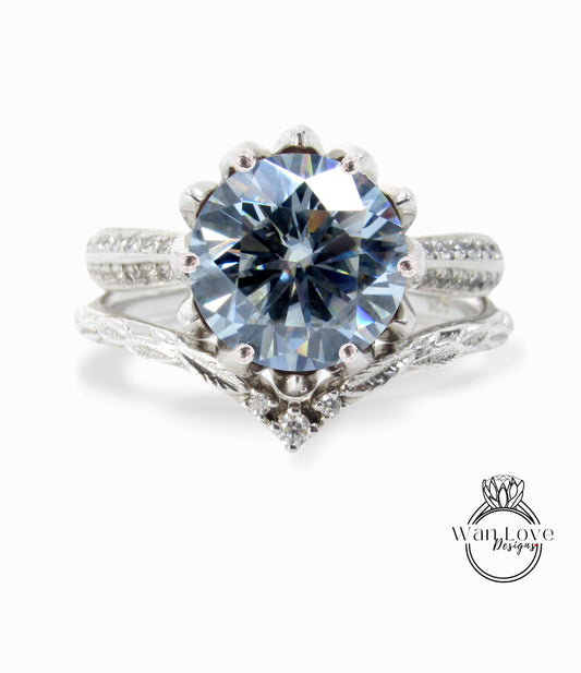 Marquise Bezel Leaf Moissanite Contoured Nesting Curved Wedding Band Sapphire Ring Custom Anniversary Gift