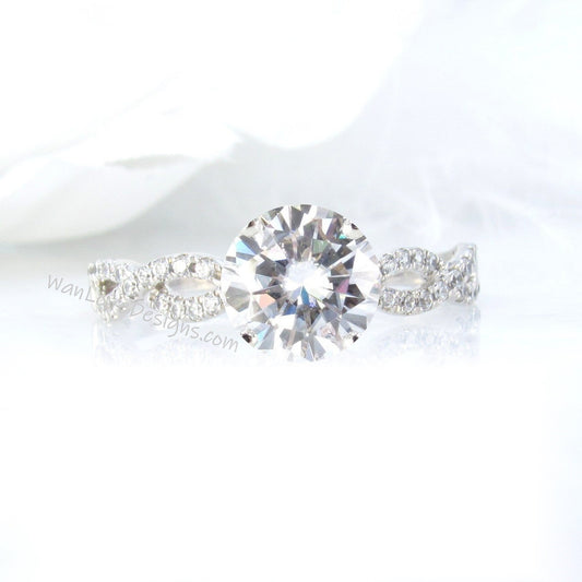 Moissanite & Diamond Lotus Flower Infinity Twisted Round Engagement Ring, 14kt 18kt Gold-Platinum-Custom-Wedding ring-Anniversary Gift
