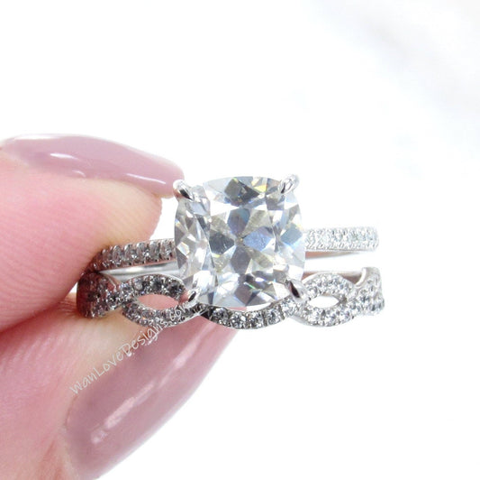 Moissanite Diamond Cushion Engagement Ring Set, Infinity Twisted Wedding Band, Custom,14k 18k White Yellow Rose Gold-Platinum