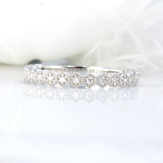 Moissanite Diamond Wedding Ring, Hexagon Shape Wedding Band, Vintage Wedding Ring, Anniversary Gift, Handmade Ring, Gift for Her, Bride