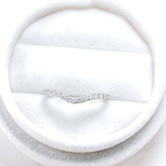 Moissanite Wedding Band, Curved Chevron Moissanite Band, Curved V Matching Band, Moissanite Wedding Crown Band, Sample Sale Ready to ship