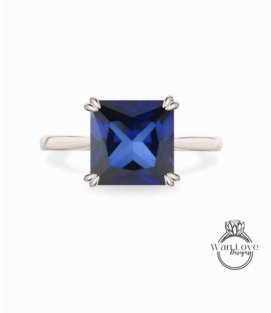 Blue Sapphire Solitaire Square Princess Engagement Ring, Custom, Wedding,Anniversary Gift,Commitment,Promise,Proposal,Asscher,WanLoveDesigns