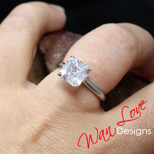 Asscher White Sapphire Engagement Ring, 4 Prong, Solitaire, 2.5 3 ct, 8mm, 925 Silver w Rhodium, Wedding, Anniversary, Ready to Ship