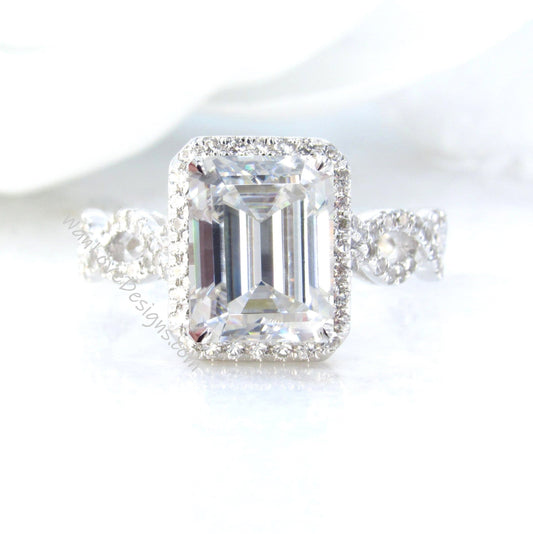 Diamond Emerald Halo Ring Unique Bridal Engagement Set Radiant Cut Infinity Twisted Diamond Band Ring Custom Handmade IGI Diamond Ring set