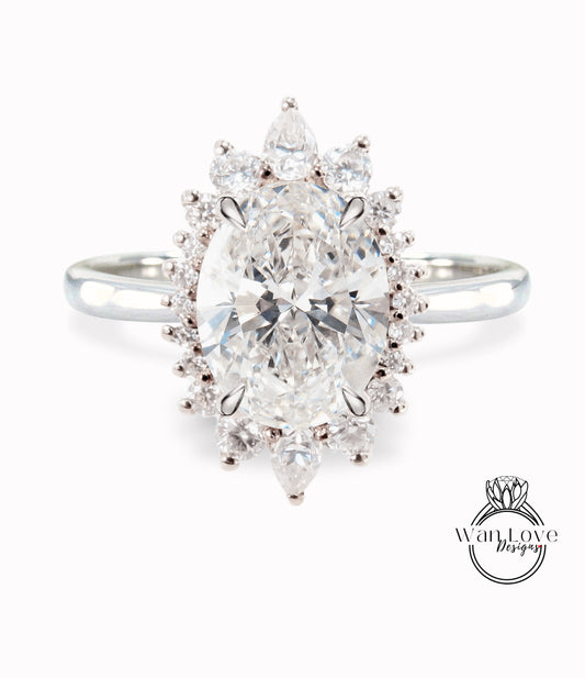 Moissanite & Diamond Oval Cluster Halo Engagement Ring, Rose Gold Bridal Wedding Ring, Anniversary Gift