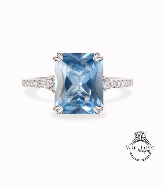 Emerald cut Aquamarine Blue Spinel engagement ring vintage diamond Cluster gold engagement ring for women Bridal anniversary gift for her