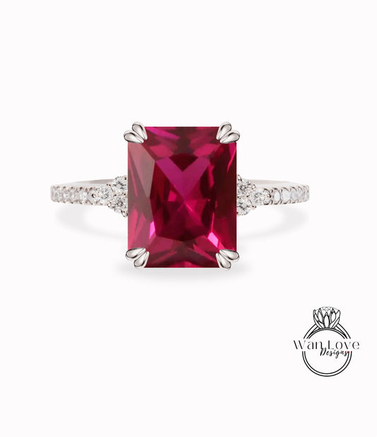 Emerald cut Ruby engagement ring vintage diamond Cluster gold engagement ring for women Bridal anniversary gift for her