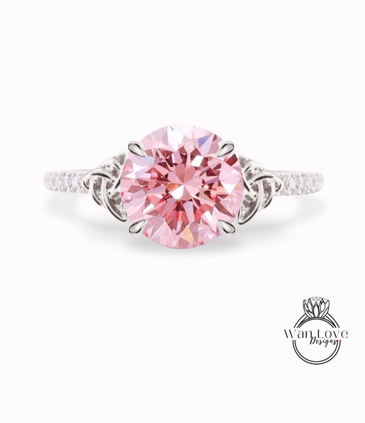 Pink Diamond Celtic Knot Round Engagement Ring, Custom, Wedding, Anniversary, Double,14k 18k White Yellow Rose Gold,Platinum