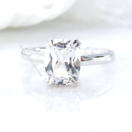 3 ct Classic Cushion Side Hidden Halo Engagement Ring, Bridal Vintage Style Wedding Ring, White Sapphire long Cushion Ring, Ready to Ship