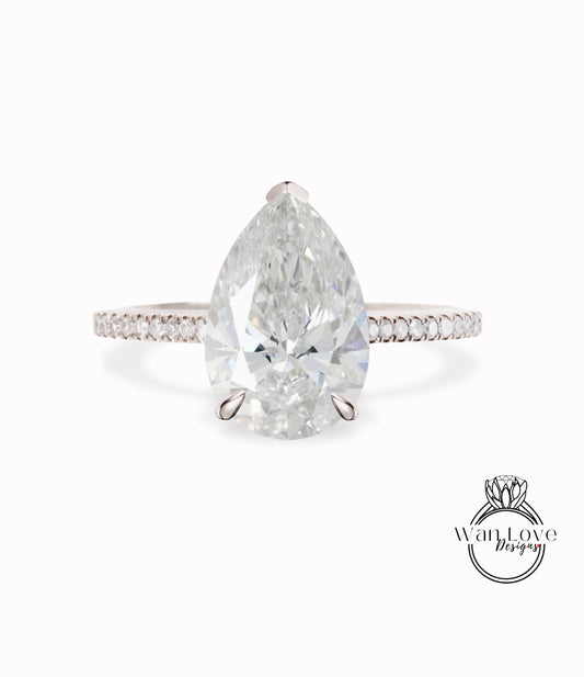 Diamond Pear engagement ring half eternity Lab Diamond ring white gold prong ring Art deco Solitaire wedding bridal Anniversary promise gift
