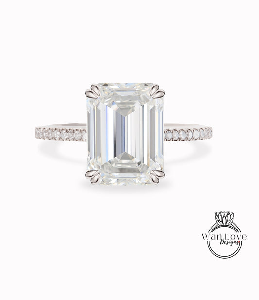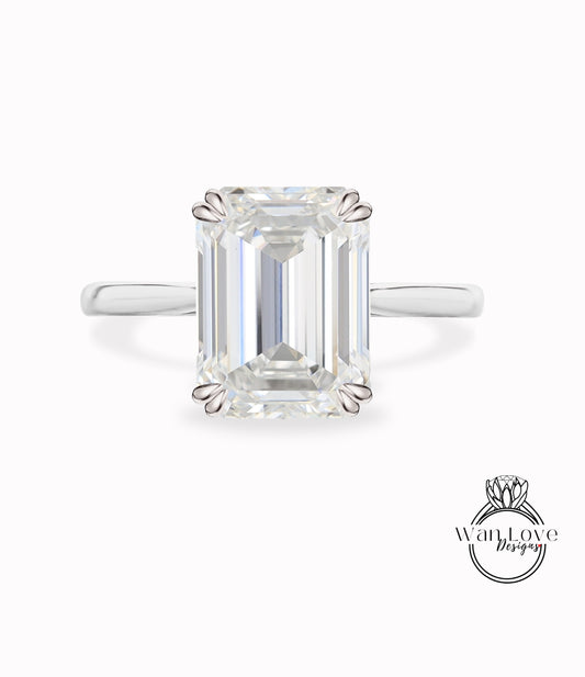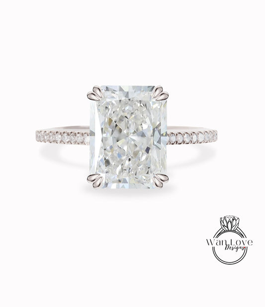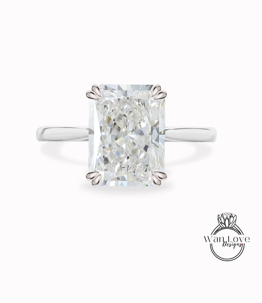 Emerald Radiant Diamond engagement ring white gold Lab Diamond ring prong vintage solitaire Unique wedding Bridal Promise Anniversary ring