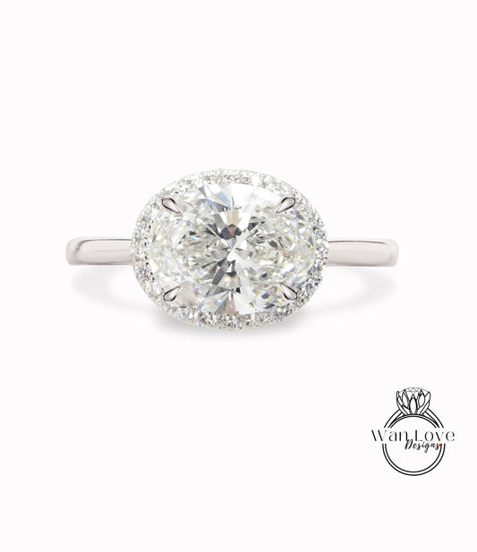 East West oval cut Halo Lab Diamond engagement ring rose gold art deco IGI Diamond promise ring east west unique anniversary gift for her