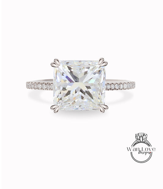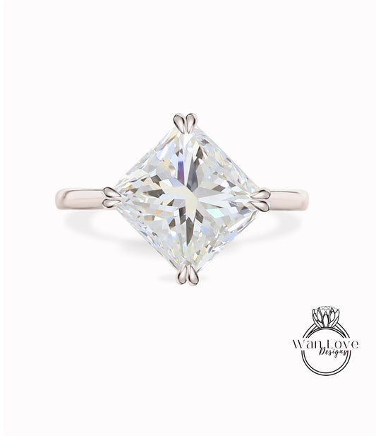 Radiant Diamond engagement ring white gold Lab Diamond ring prong vintage solitaire Unique wedding Bridal Promise Anniversary ring