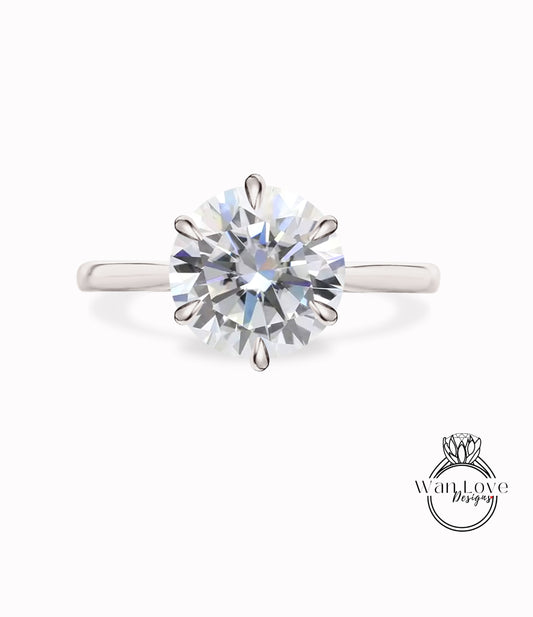 Diamond Solitaire Round 6 prong Engagement Ring 14k Gold, Lab Diamond Proposal Ring, Ethical Jewelry, Eco Friendly Diamond, IGI HPHT CVD Lab Diamond