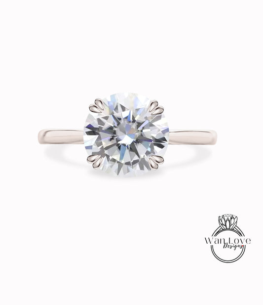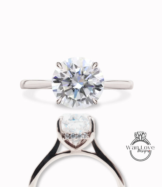 Diamond side halo round plain tapered shank band Engagement Ring, Cathedral Basket 14kt 18kt Gold-Platinum-Custom IGI Lab Diamond ring-Bridal Wedding ring, Anniversary Gift