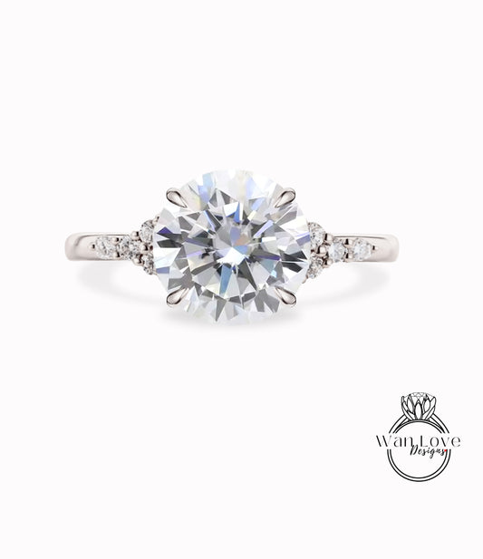 Round Diamond Engagement Ring, Solitaire Double prong Round Diamond half eternity Ring, Solid 14k gold engagement ring with IGI lab diamonds