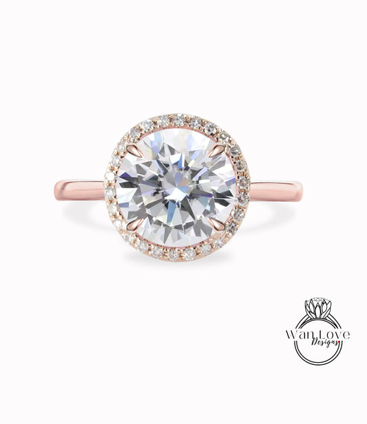 Diamond Halo plain band Engagement Ring, tapered band Round Diamond Halo Ring, Solid 14k gold engagement ring with IGI lab diamonds