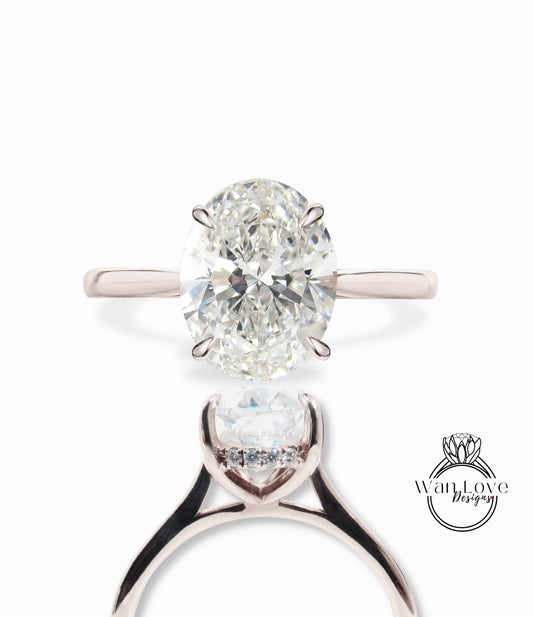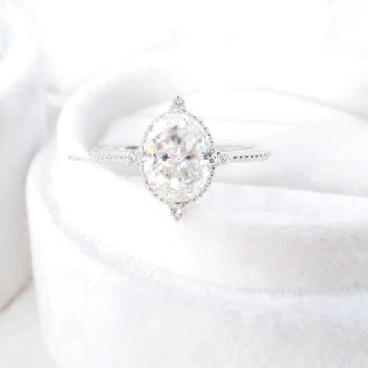 Diamond Oval Milgrain Engagement Ring, 14k 18k White Yellow Rose Gold, Platinum,Custom,Wedding, North Star, IGI Lab Diamond Engagement Ring