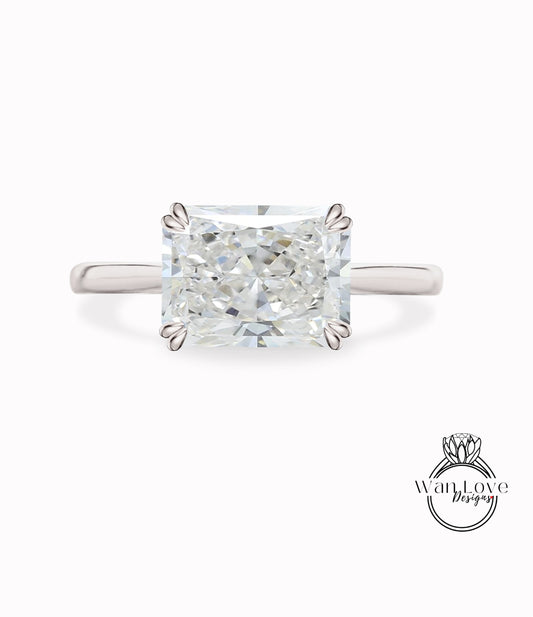East West Radiant Diamond engagement ring white gold solitaire double prong ring vintage wedding art deco Bridal Promise Anniversary ring