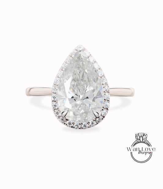 Pear shaped Diamond engagement ring vintage Art deco Unique 14K/18K white gold Lab diamond Halo prong Diamond wedding Anniversary ring
